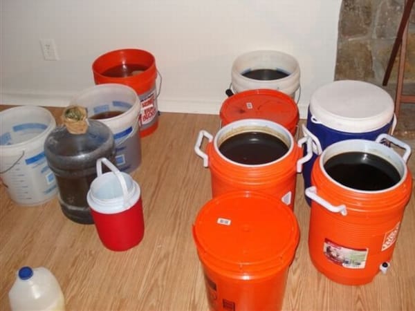Chemicals used in meth labs include flammable and volatile solvents such as methanol, ether, benzene, methylene chloride, trichloroethane, and toluene. Other common household chemicals include muriatic acid, sodium hydroxide, table salt, and ammonia. Propane tanks are used to heat the material.