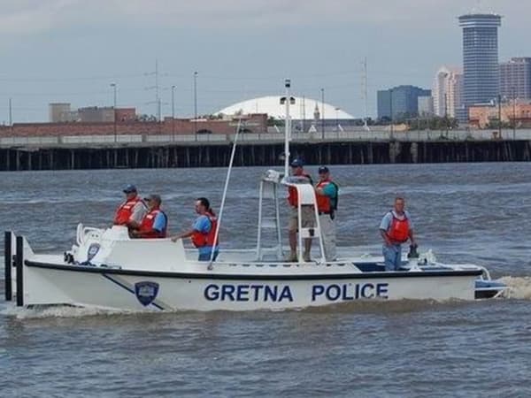 This 28-foot M2 military bridge boat was used by the Gretna (La.) Police Department during the BP oil spill in 2010.