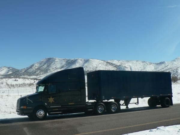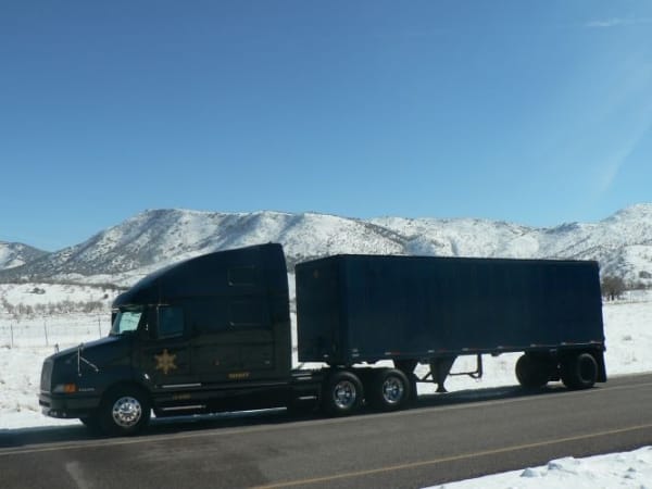 The agency that acquired this Volvo 18-wheel semi-truck and trailer uses the rig to collect 1033 equipment from around the country and deliver to its jurisdiction and to surrounding agencies. tt