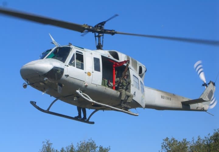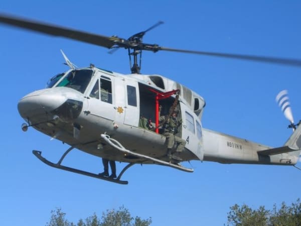 Law enforcement agencies use the Bell UH-1H to transport personnel into remote sites. The craft seats up to 10, and includes a winch to lift personnel from the ground.