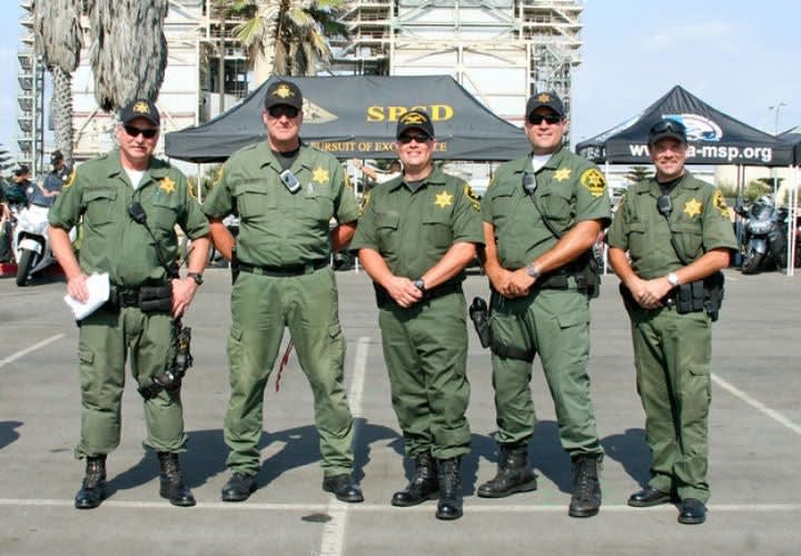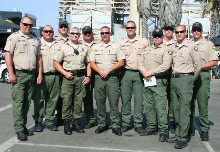 Deputies with the Orange County Traffic Officers' Association organized the annual motorcycle rodeo and skills competition in Huntington Beach, Calif. One deputy from each city helped plan the event. Deputy Brad Blakely is fourth from left.