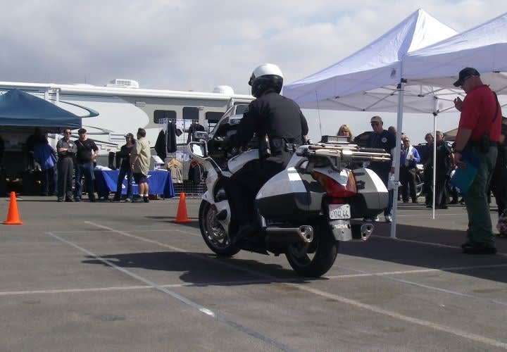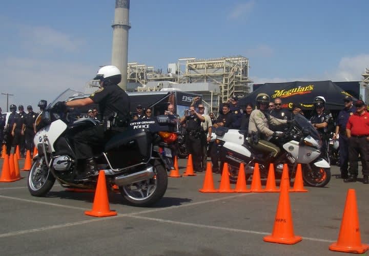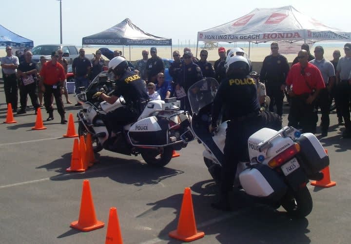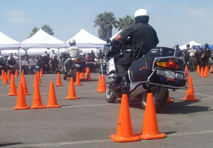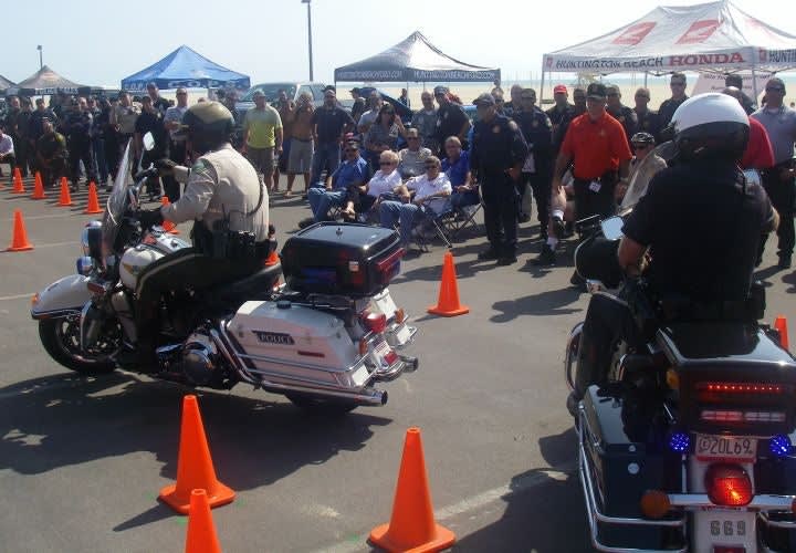 An annual California police motorcycle skills competition drew almost 500 officers to a sun-drenched parking lot along the Huntington Beach sand to compete for top-rider honors, train on patterns of neatly arranged orange cones and share a few moments of levity about their specialized patrol work. The Orange County Traffic Officer's Association hosted the annual police motorcycle skills competition , which nearly doubled in attendance from a year ago.