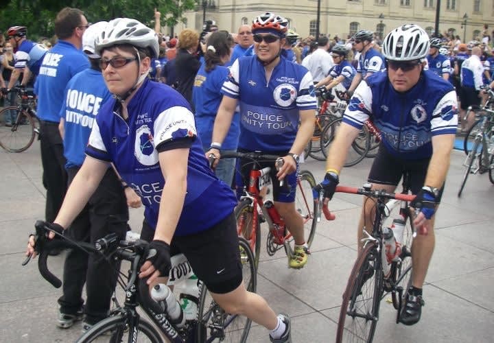 Each year, about 1,100 officers participate in the Police Unity Tour, a 320-mile bicycle ride from New Jersey to D.C. during National Police Week. The ride honors fallen officers from the prior year and raises funds for the National Law Enforcement Officer's Memorial Fund (NLEOMF). Read our coverage of the unity tour .