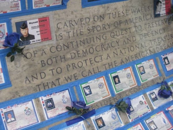 At the entry point of the memorial park, a quote from President Bush is carved into the wall, honoring officers who "protect a national treasure that we call the American Dream."