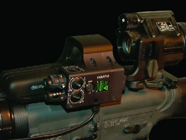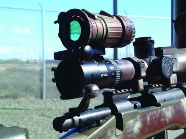 Night Optics USA distributes a wide variety of tools and accessories for night vision systems. The Day/Night adapter is a nifty sub-$300 gadget that allows an operator to mount a PVS-14 monocular behind his or her rifle optics, converting it into a night-vision sight. To use the rifle optics in daylight, all an operator has to do is flip the PVS-14 out of the way. Another useful accessory offered by Night Optics is the NO/NVG-23 Stereoscopic Goggle/Binocular. This inexpensive device allows the user to take two Mini-14 monoculars and convert them into a binocular system for driving and other operations that require depth perception.