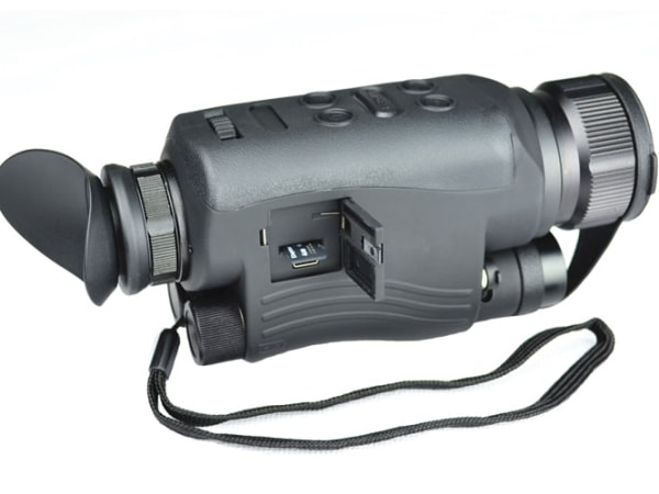 Luna Optics' most popular digital viewer, the LN-DM50-HRSD, offers internal Image and HD video recording and transition between a full-color image and a super-light-sensitive night vision green image when using its built-in IR illuminator. It features precision all-glass optics with 5x-20x image magnification, a distinctive electronic image zoom system, and a super powerful IR illuminator with viewing distance up to 200m in total darkness, Take pictures and record 720p high-definition video onto a Micro SD card (4GB card is included – upgradeable to 32GB). Unit is equipped with USB, video, and AC outputs and comes with all the cables, AC adapter, and a carry case with shoulder/belt straps.