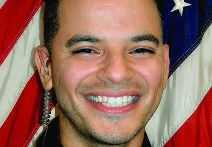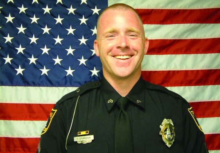 July 2010: Arriving before firefighters at a house fire, Cpl. Christopher Sturgeon (pictured) and Officer Trent Ginn went into the burning home and rescued a trapped woman. Following her screams, Sturgeon crawled along the floor to stay below the thick smoke that permeated the house as he searched for and found the woman. Ginn helped retrieve her from the house. Both officers were treated for smoke inhalation at a local hospital. The woman recovered fully.