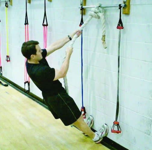 You can drape 10- to 11-foot lengths of climbing rope over a bar to use for rope pulls.