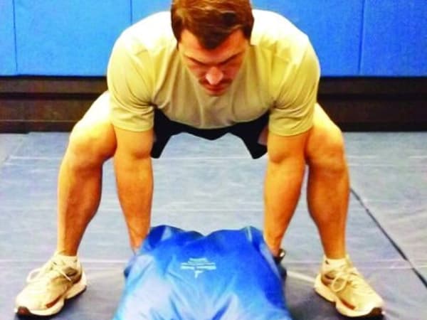 Sandbags are one great way to develop the functional strength you require on the job. The sandbag lift is a total body exercise that enhances motor control and core strength. This is the start point of a 100-pound sandbag lift.