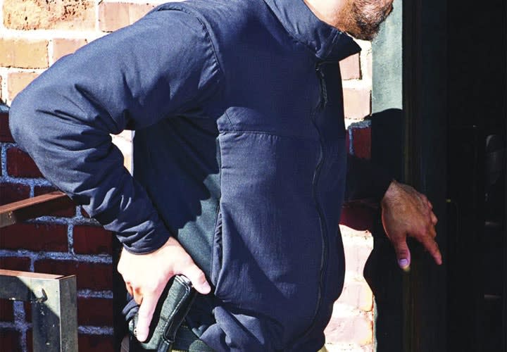 The Sabre 2.0 from 5.11 Tactical is a concealed carry jacket designed for covert operations. It's fully waterproof and breathable with a new updated mesh and nylon liner. In addition to right and left shoulder pockets, updated front vertical chest pockets and back up belt system-compatible hand warmer pockets provide storage. The Sabre 2.0 also has an updated fit, a waterproof removable hood, and a new vertical zipped back pocket near the lumbar to store the hood. Last but not least, the jacket features 5.11 Tactical's new Quixip side access system for quick access to a concealed sidearm. Available in black, coyote brown, moss, and dark navy.