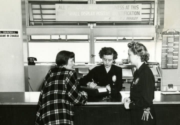 Police women conducting a booking interview at the Los Angeles City Main Jail circa 1950. Photo courtesy of the Los Angeles Police Historical Society.