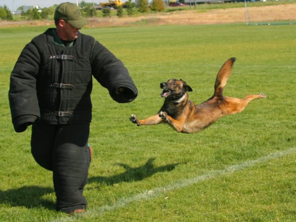A high-flying Belgian Malinois with the Idaho Police Canine Association.