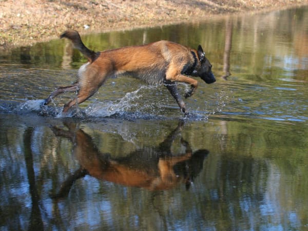 A Belgian Malinois cadaver K-9 "walks" on water.
