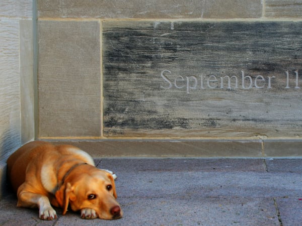 A Golden Labrador visits the memorial for fellow K-9s at the Pentagon.