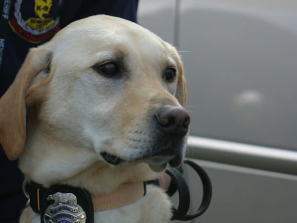 Becki is a Chocolate Labrador serving the Riverside (Calif.) PD. Becki is an accelerant K-9.