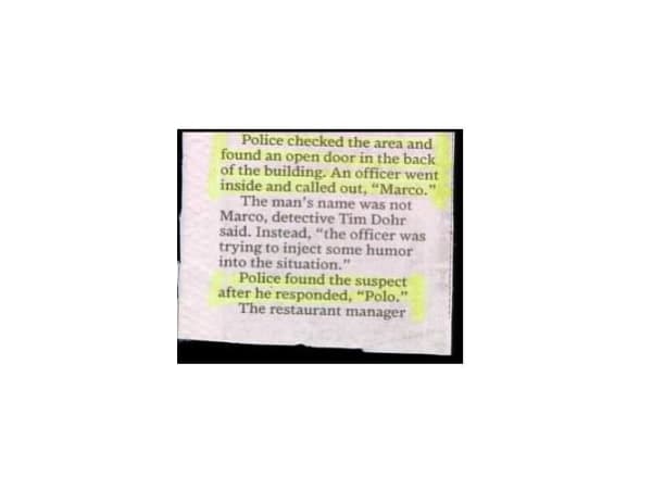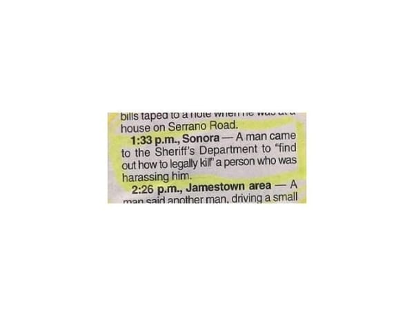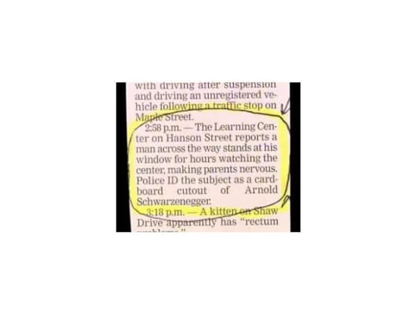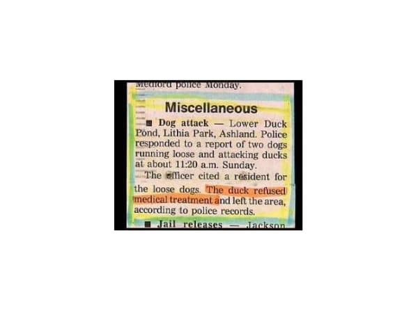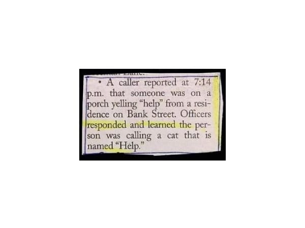 A staple section of local newspapers has always been the short crime report items culled from the police blotter. Usually, it's a cub reporter's first job to head to the local substation to jot down pertinent details from the crime reports officers take about mostly petty crimes. Once in awhile, these young reporters submit a suggestion for a headline that squeaks by an overworked, bleary eyed editor. Sometimes, as they say, mistakes were made.