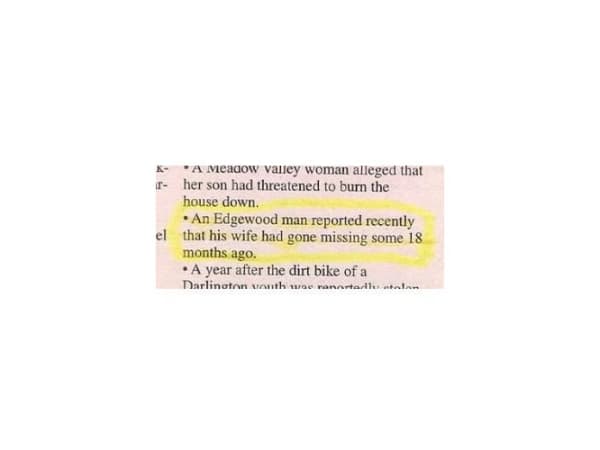 A husband noticed his wife had gone missing. OK, so he was a bit slow to detect it.