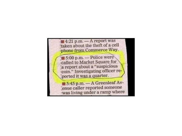 When police were called out for a report of a "suspicious coin," an investigating officer got to the bottom of the case.