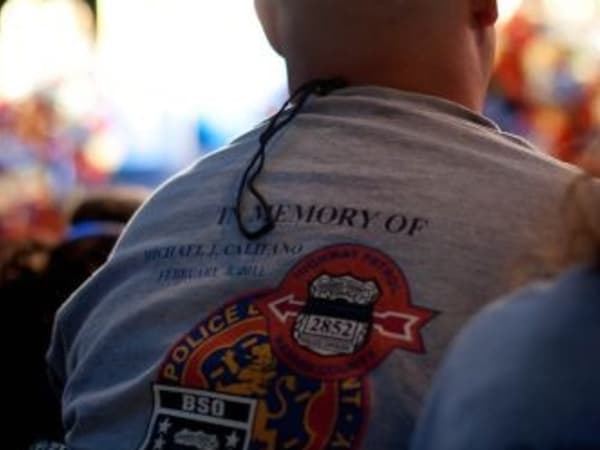 A supporter of slain Nassau County (N.Y.) Police officer Michael Califano participates in the vigil. Photo: Mark W. Clark