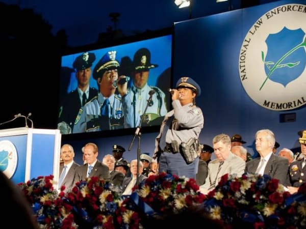 Lt. Mavis Johnson of the Baton Rouge Police Department sings "Amazing Grace." Photo: Mark W. Clark