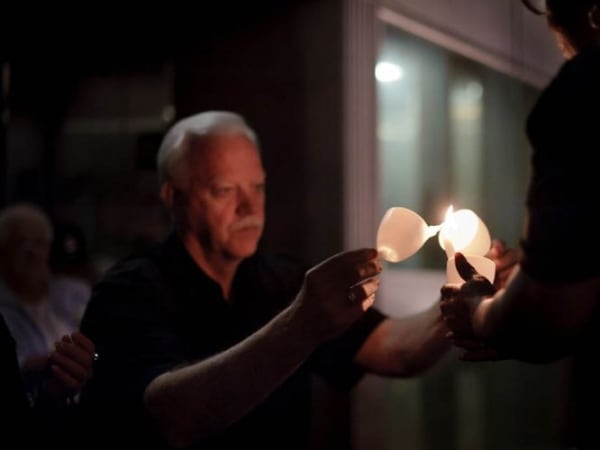 Attendees of the vigil lighted candles as the names of 362 fallen officers were read. Photo: Mark W. Clark