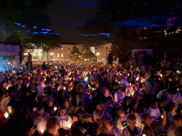 Thousands of officers, survivors, family members, and others fill Judiciary Square in D.C. for the NLEOMF's annual candlelight vigil. Photo: Mark W. Clark