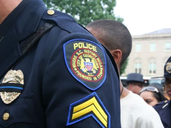 Members of the Georgetown (S.C.) Police Department participated in the vigil's honor guard. The city was incorporated in 1734. Photo: NLEOMF