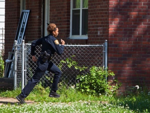 Memphis police officer Virginia Awkward chases a suspect during a foot pursuit in an episode of "Police Women of Memphis."