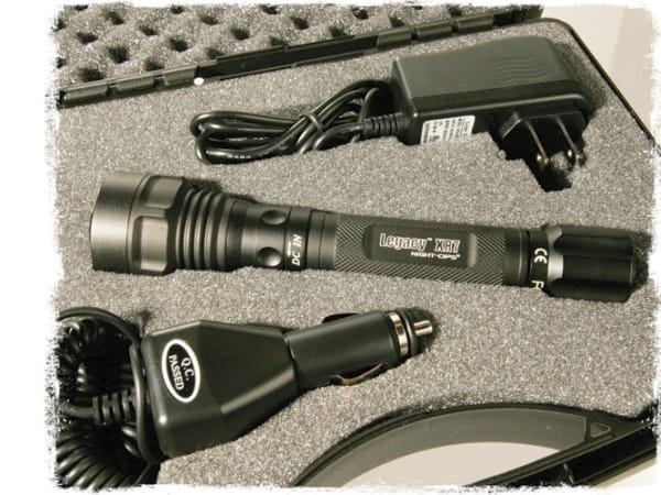 BlackHawk's Legacy XHR7 Flashlight's heavy-duty design features 350-lumen output. This rechargeable flashlight comes with the latest generation of Samsung lithium ion rechargeable battery that develops no “memory effect.” The flashlight has a one-hour runtime but can be charged any time during the battery’s cycle using either the AC/DC wall outlet or car charger. An AC/DC charger input is hidden under a rotating, protective collar below the bezel head. A protective hard case offers safe storage and transportation. The light is 7.88 inches long, 10 ounces with batteries, and has a 2.25-inch diameter. List price is $299.99.&l