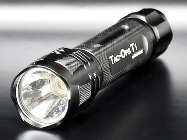 The Tac-Ops T1 is a new, flashlight from River Rock Designs. This heavy-duty precision machined anodized aircraft aluminum bodied light delivers a 235-lumen LED white light. The Tac-Ops T1 emits a fast flash strobe for signaling or self-defense to dazzle an opponent and a battery-saving low-light mode. It has low-light color LED modes: red for low-light operations, night vision retention, or emergency use; and a UV (blue) LED to search in darkness for fluids such as urine, trace blood, and other bodily fluids of humans or animals. The Tac-Ops T1 measures 5.2 inches long and weighs four ounces. It includes two 3V CR123A lithium batteries. List price