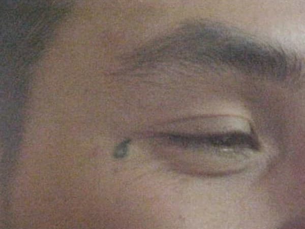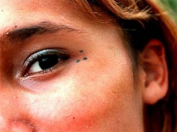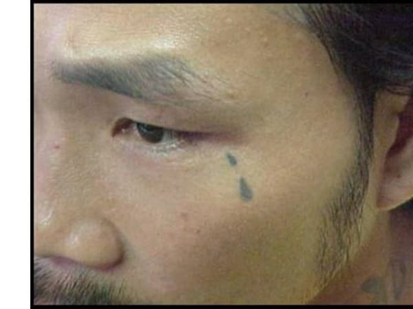 An example of a filled-in teardrop tattoo.