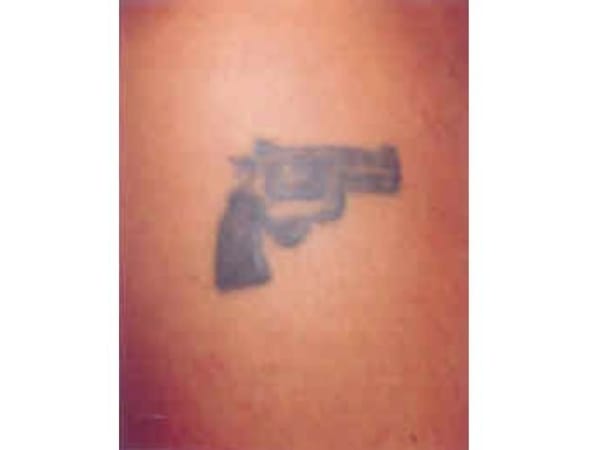 Like skulls, demons and wild animals, the depiction of a handgun on a gang member generally is used to enhance the intimidation factor. Some gang members who have taken up a career as a "stick-up man" or armed robber will tattoo this symbol of their trade. The Texas prison gang "Los Hermanos Pistoleros" ("Brotherhood of Gunmen" or LHP) uses the pistol as their symbol. Several of them have a realistic-looking pistol permanently tattooed on their waistline. Officers have referred to this as the "please shoot me" tattoo.