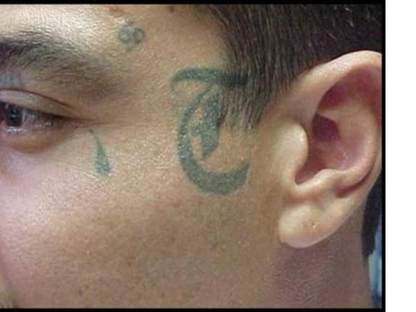 Gang members have numerous explanations for the teardrop tattoo. It likely began in the 1950s in the California Youth Authority (CYA) and was tattooed as an outline to indicate one year in custody. When the teardrop was filled in, it indicated five years in custody. Later, gang members used it to memorialize a murdered homeboy and when the homeboy was avenged it was colored in. More recently, it has become just another gang decoration.