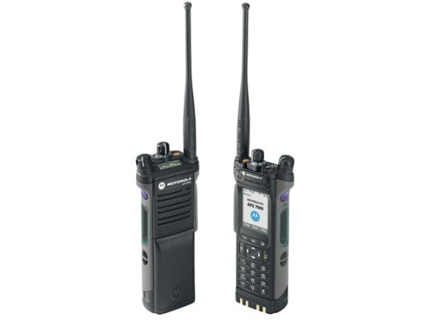 Motorola Solutions' APX 7000 multi-band (700/800 MHz and VHF) portable radio is designed specifically for first responders, enabling instant multi-agency interoperability. The Project 25 radio communicates with FDMA and TDMA networks and has integrated GPS. The dual-sided portable has both an audio and data side, providing optimal functionality and loud and clear audio in a compact rugged form factor. APX 7000 has text messaging, intelligent lighting, user-controlled radio profiles, and a slip-free T-Grip form factor with raised slanted knobs and buttons.