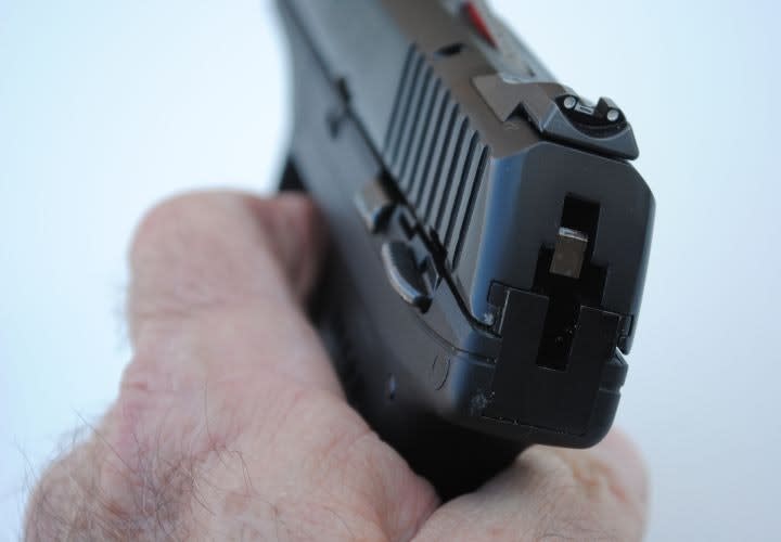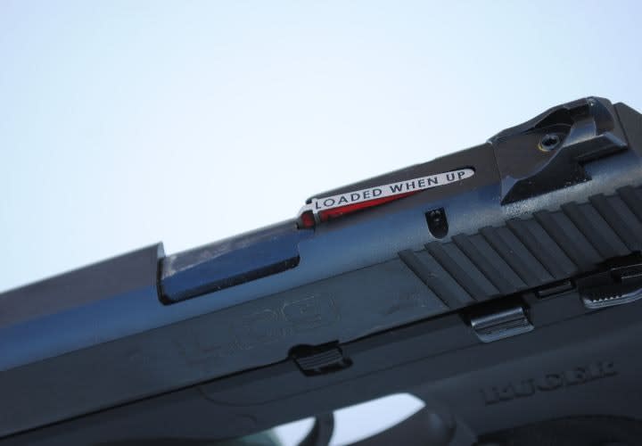A small cutout at the rear of the chamber also allows the shooter to verify if the pistol is loaded.