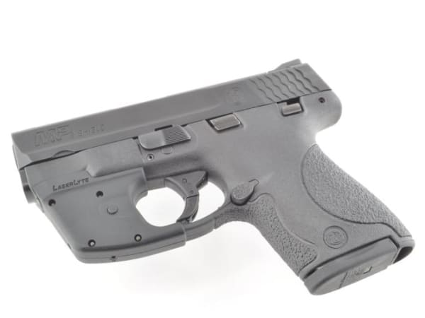 The Laserlyte UTA-SH laser mounts to the trigger guard and can be activated with an ambidextrous switch. The laser can be programmed to operate in "constant on" or pulse mode.