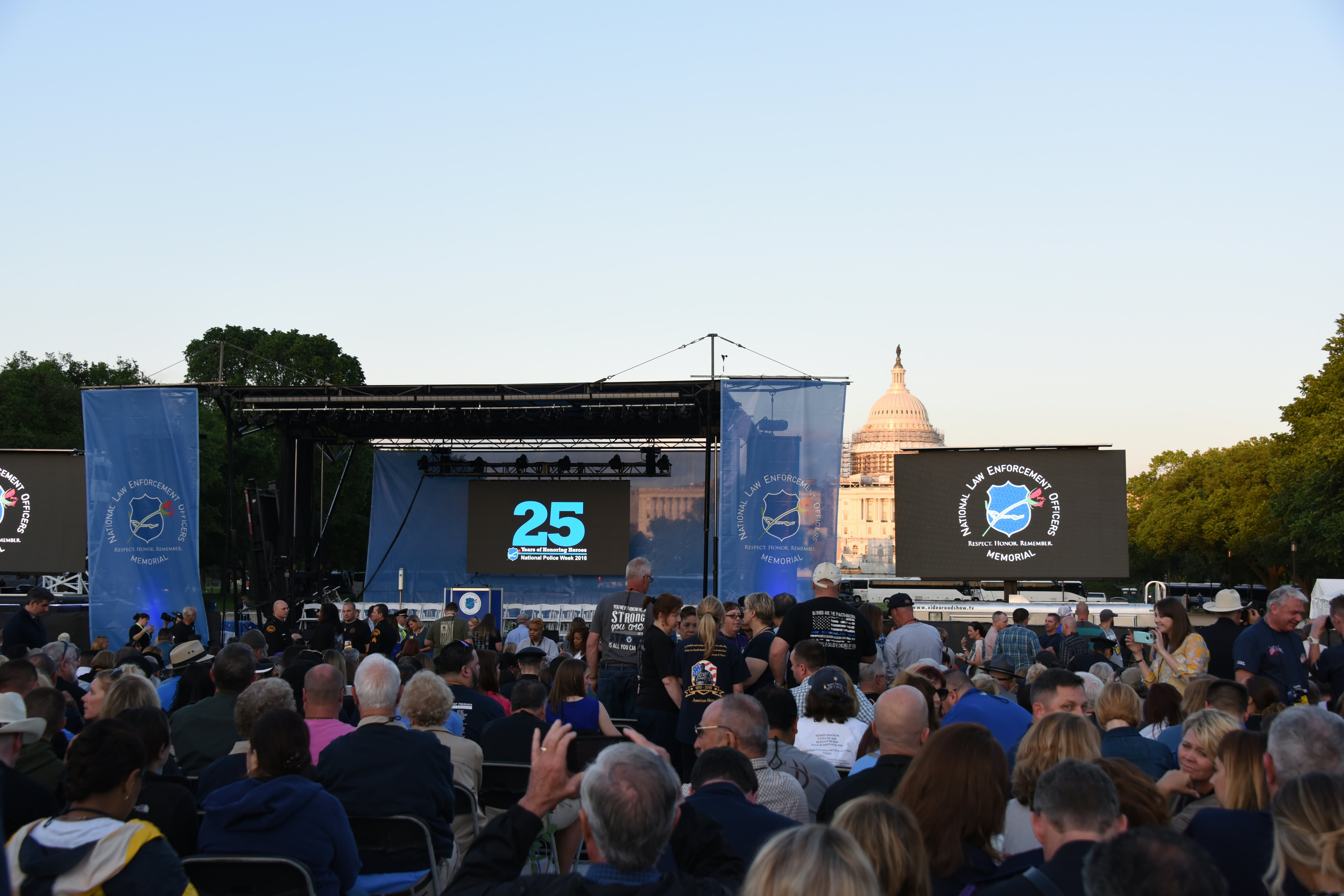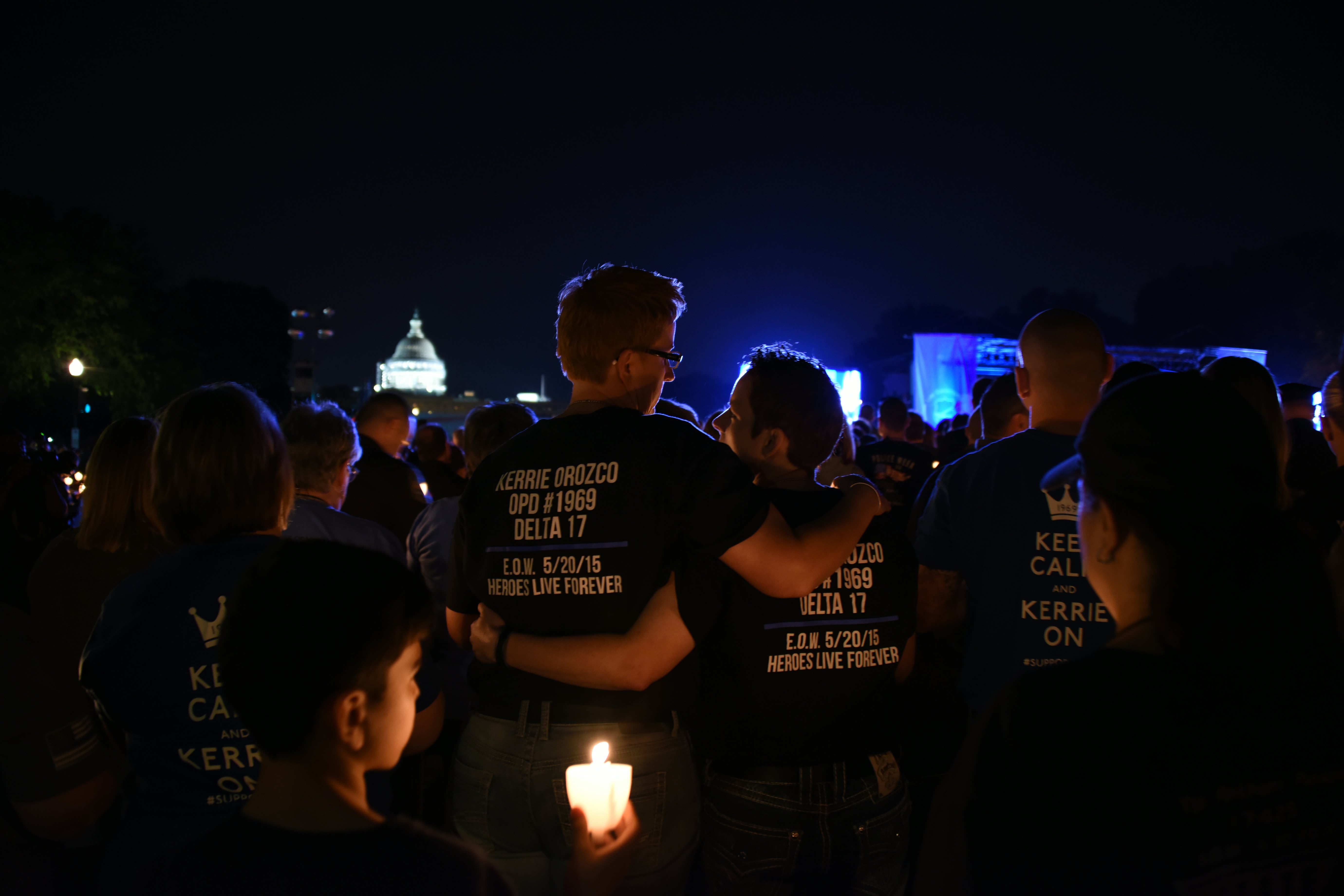 On Friday May 13 more than 20,000 people, including officers, survivors of fallen officers, and police supporters gathered on the National Mall in Washington, DC, for the 28th annual Police Week Candlelight Vigil. Normally held in and around the National Law Enforcement Officers Memorial, this year’s vigil was held on the Mall in the shadow of the Washington Monument and with the Capitol Hill as a backdrop. Attendees said the location made the event even more emotional.