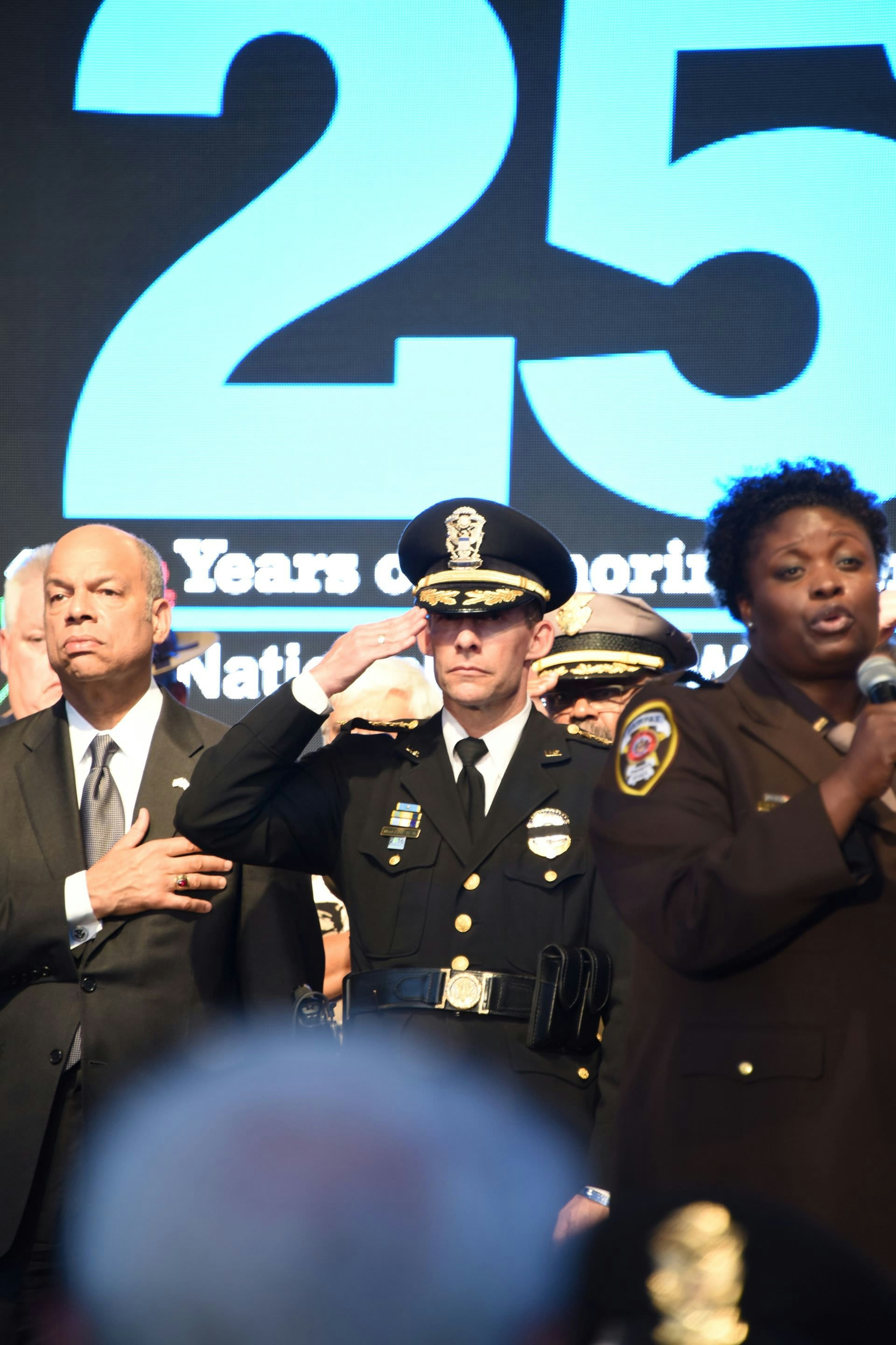 POLICE Magazine sent photographer Lynn Cronquist to this year’s vigil. She captured images of survivors being escorted to their seats, dignitaries such as Department of Homeland Security Secretary Jeh Johnson and Attorney General Loretta Lynch speaking, the candlelight ceremony itself, and officers visiting the National Law Enforcement Officers Memorial after the vigil to pay their respects to fallen comrades. (All Photos: Lynn Cronquist)