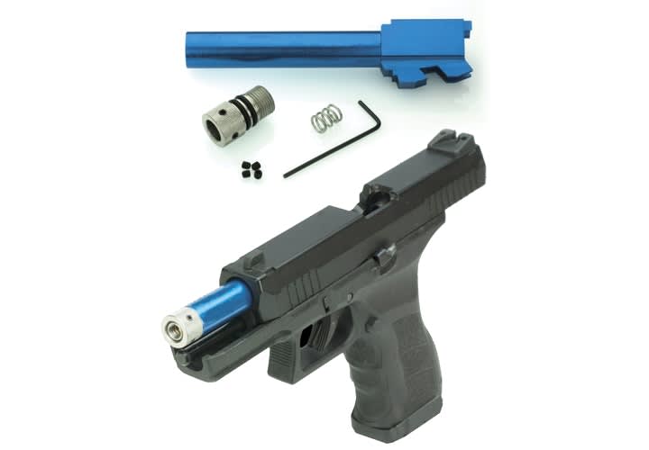 Laser Ammo's Recoil Enabled Airsoft Laser (R.E.A.L) conversion kit for KWA ATP Airsoft pistols is designed for full blowback laser training. The kit includes a replacement drop-in barrel that currently fits the KWA ATP Airsoft pistols. Installation of the R.E.A.L kit is done simply by replacing the stock barrel with Laser Ammo's kit assembly. Also, the LA FLASH is a high-end CNC-machined flash suppressor adapter that replaces the stock flash guard on any “off the shelf” Airsoft rifle.
