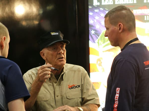 R. Lee Ermey ("The Gunny") is a regular attendee at SHOT. He endorses Glock handguns and SOG knives.