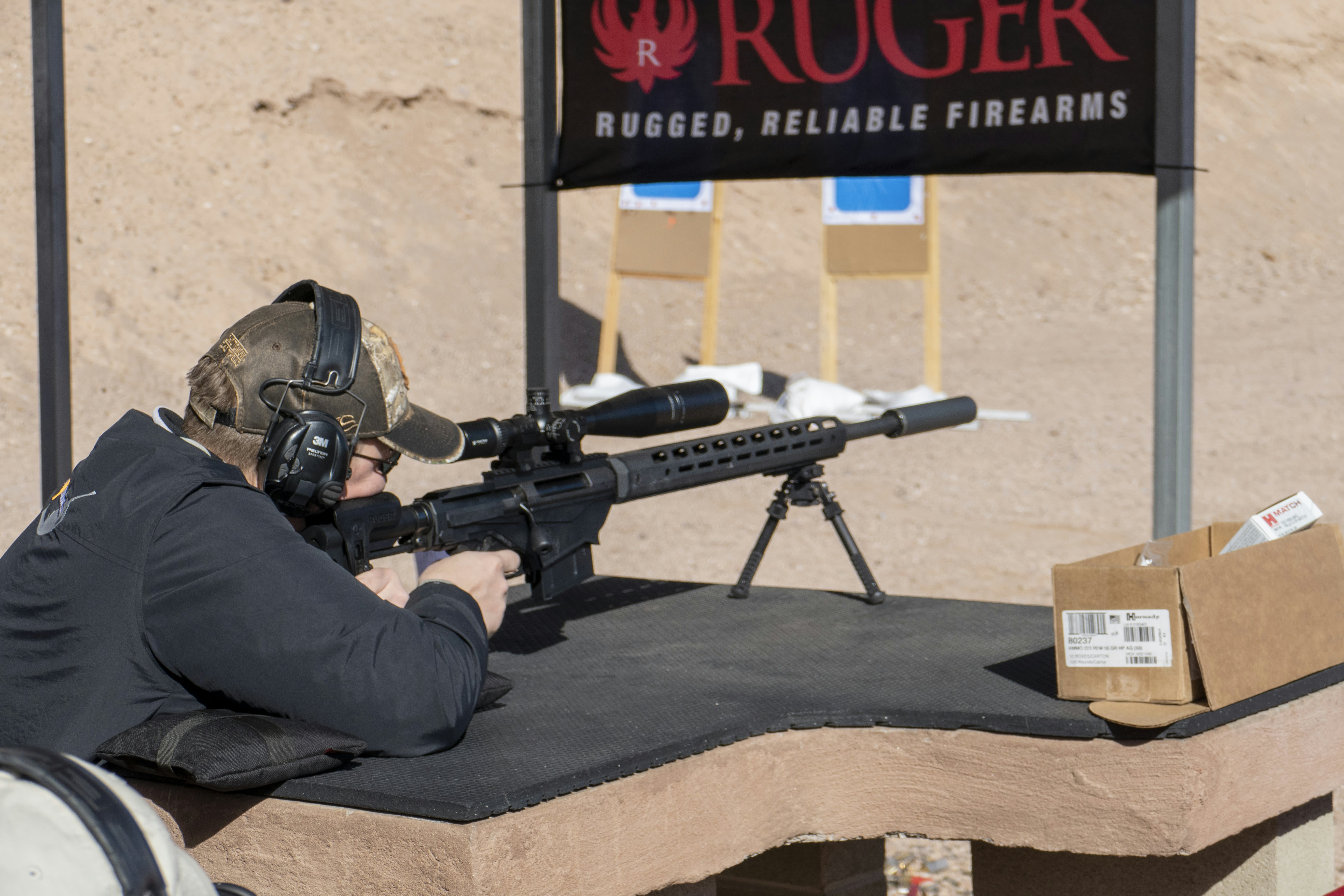 After stepping off the shuttle bus and into a dust storm reminiscent of the Mint 400 scene from the movie “Fear and Loathing in Las Vegas,” I determined that attempting to shoot any firearm long distance would be far more challenging than my novice rifle shooting skills could handle. I primarily stuck with handguns and short-range rifle shooting.