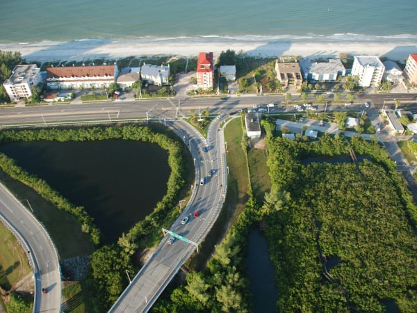 View looking west. Brooks headed northbound on Gulf Boulevard, after exiting the Park Boulevard bridge.