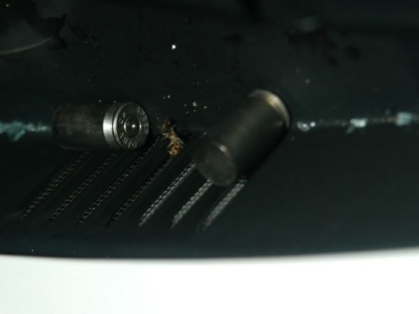 A 9mm round from Brooks blew a hole in the front windshield of Dep. John Randall's cruiser, spraying glass in Sgt. Fleming's face.