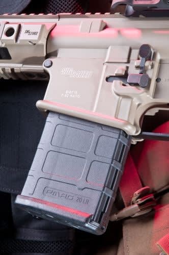 The SIG716 arrives with two 20-round PMAGs.