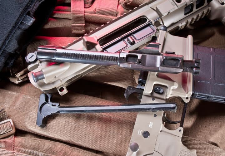 Once disassembled, you can view the SIG716's barrel and charging handle.