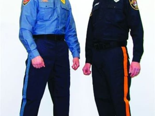 BDU pants and shirts from Red the Uniform Tailor are made of a 65-percent polyester/35-percent cotton blend. Ladies sizes are available through the company's custom line. BDU pants from Red the Uniform Tailor come in brown with tan stripe, or navy with a royal, gold, or French blue stripe. Pants feature cargo pockets with flaps and a waist side adjuster. The Short Sleeve Class C BDU Shirt has sewn in creases, epaulets, and patch pockets with scalloped flap and Velcro closure. Shirts are available in dark navy, French blue, or tan with contrasting brown trim. Also available in a long-sleeve version.