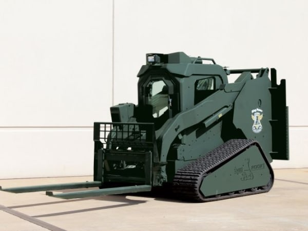The Rook Critical Incident Vehicle's Hydraulic Breaching Ram attachment.
