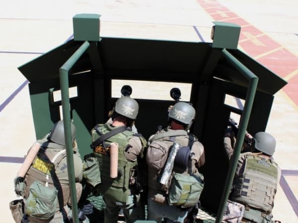 Gun port holes on The Rook Critical Incident Vehicle's Armored Deployment Platform.