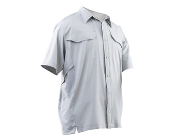 24-7 Series Cool Camp Shirt—New Design! Updated polyester spandex fabric, moisture wicking and quick drying. Button-top snap-front placket for easy access to concealed weapon. Arctic Grey, Mountain Blue, Black, and Sage
