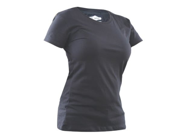 Here's a photo of the Ladies' Pro-Weight T-Shirt—tagless 100% ringspun cotton T-shirts. Perfect for layering for duty or casual wear. Preshrunk. Black, White, Heather Grey, Red, Navy